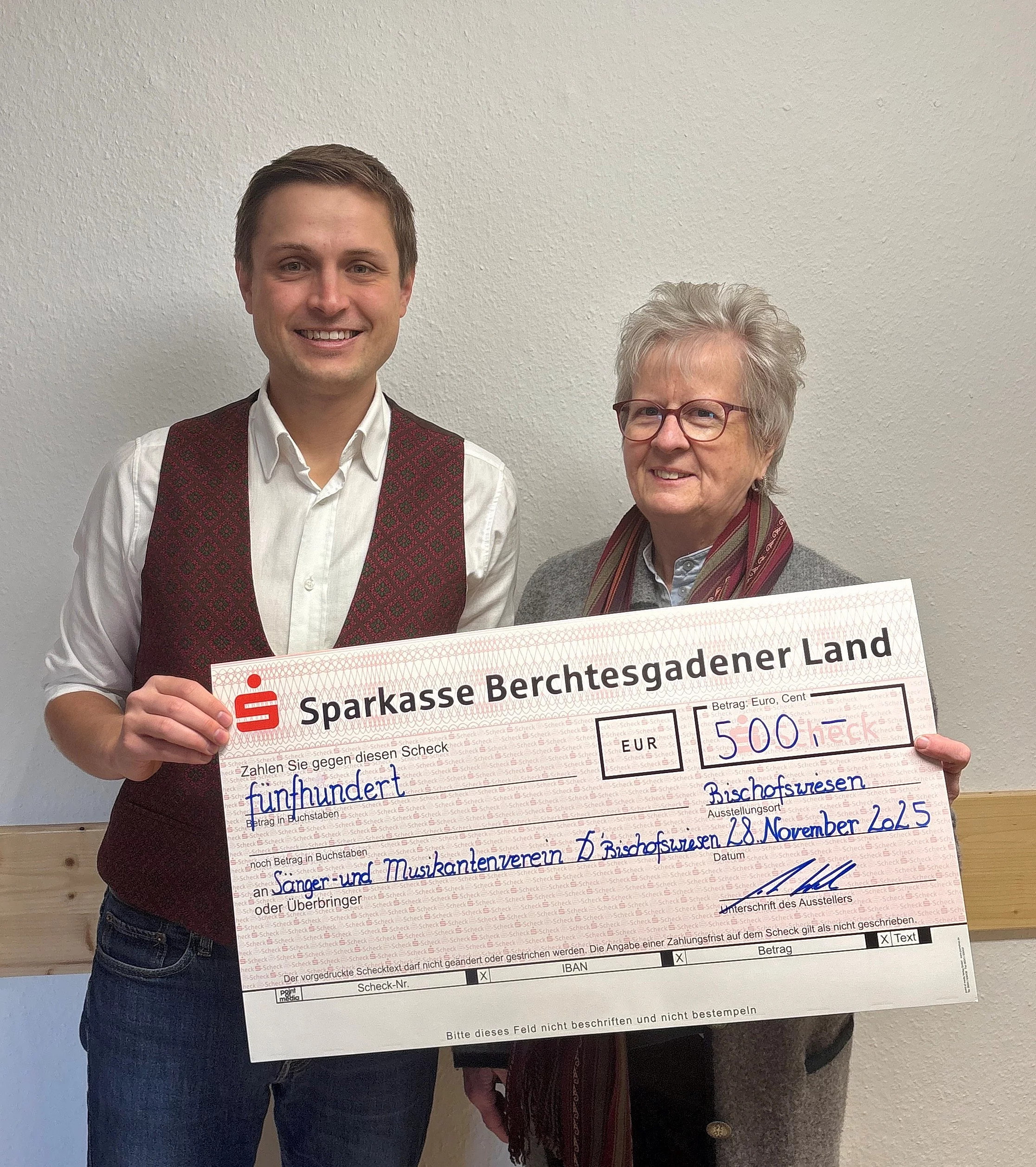 500 Euro für den Sänger- und Musikantenverein D´Bischofswieser e. V.