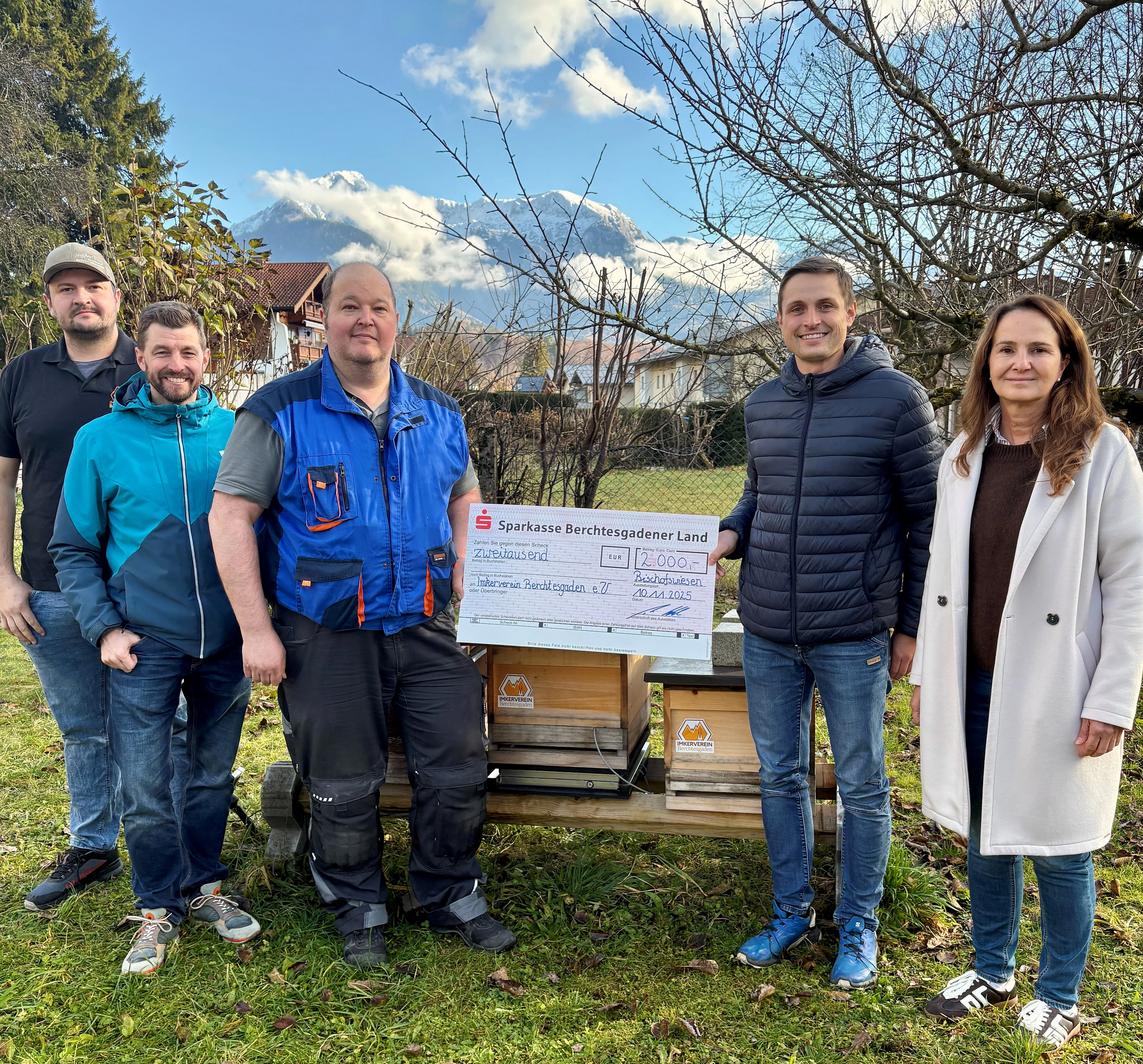 Große Freude beim Imkerverein Berchtesgaden sowie der Grundschule Bischofswiesen. Die es-Bürgerstiftung Bischofswiesen hat dem Imkerverein einen symbolischen Spendenscheck über 2.000 Euro für das gemeinsame Schulbienenprojekt überreicht.