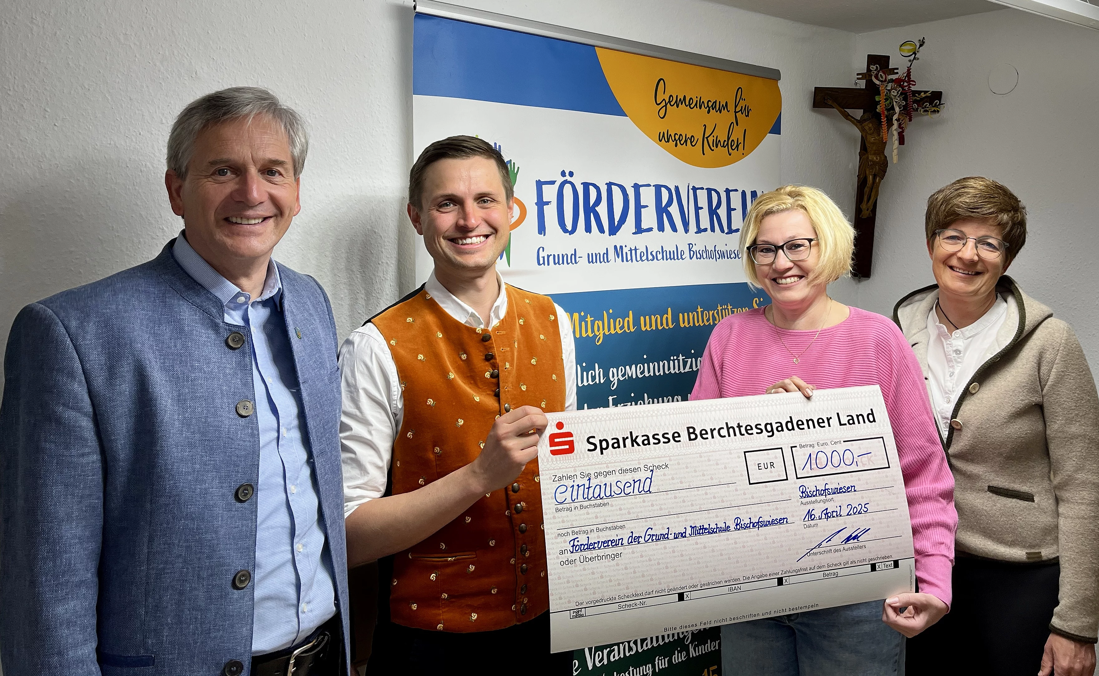 Mit einer großzügigen Spende setzt die es-Bürgerstiftung Bischofswiesen ein starkes Zeichen für Zusammenhalt und soziale Verantwortung: Am vergangenen Mittwoch überreichten Vertreter des Stiftungsvorstands der es-Bürgerstiftung Bischofswiesen Thomas Weber und Michael Kleinert, einen Spendenscheck in Höhe von 1.000 Euro an den Förderverein der Grund- und Mittelschule Bischofswiesen. Die Mittel sollen gezielt dazu verwendet werden, sozial schwache Familien zu unterstützen um deren Kindern die bestmögliche Teilhabe am schulischen Leben zu ermöglichen.