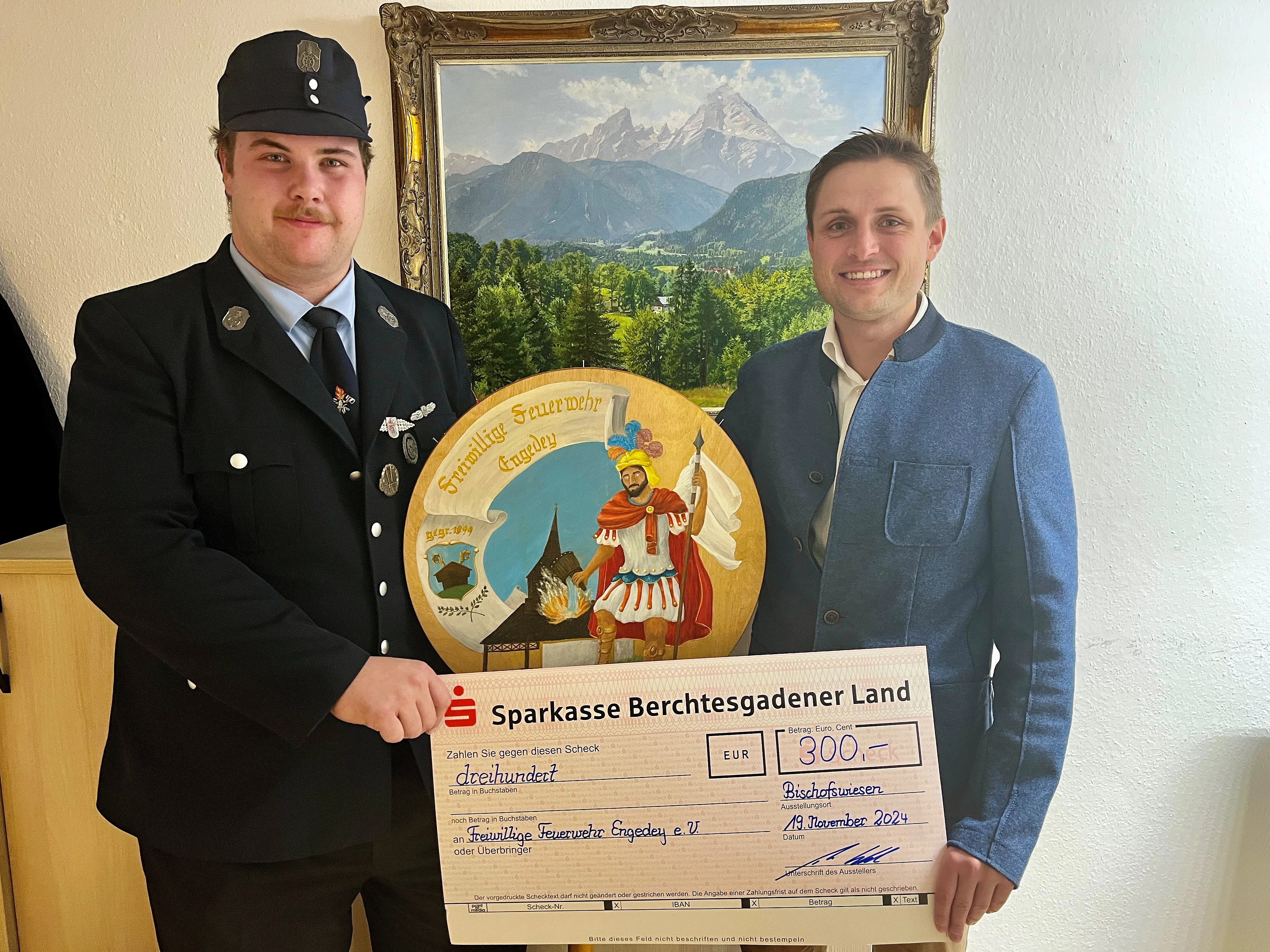300 Euro für das neue Taferl der Freiwilligen Feuerwehr Engedey e. V.
