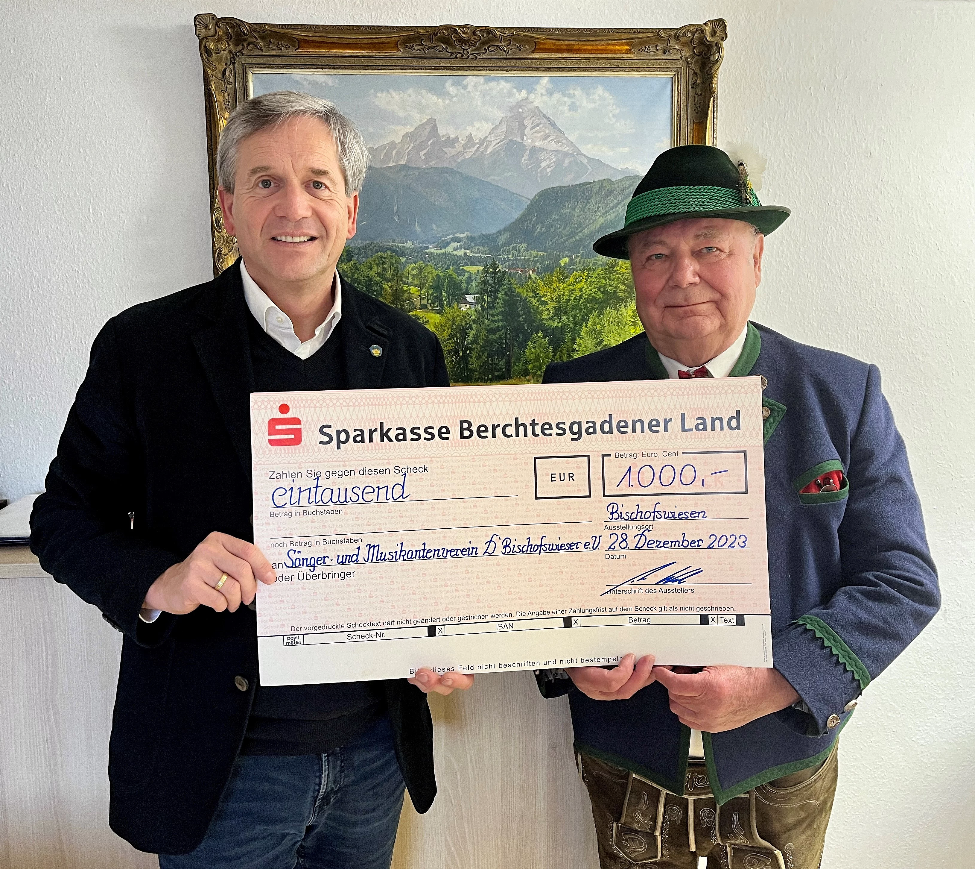 1.000 Euro für den Sänger- und Musikantenverein D´Bischofswieser e. V.