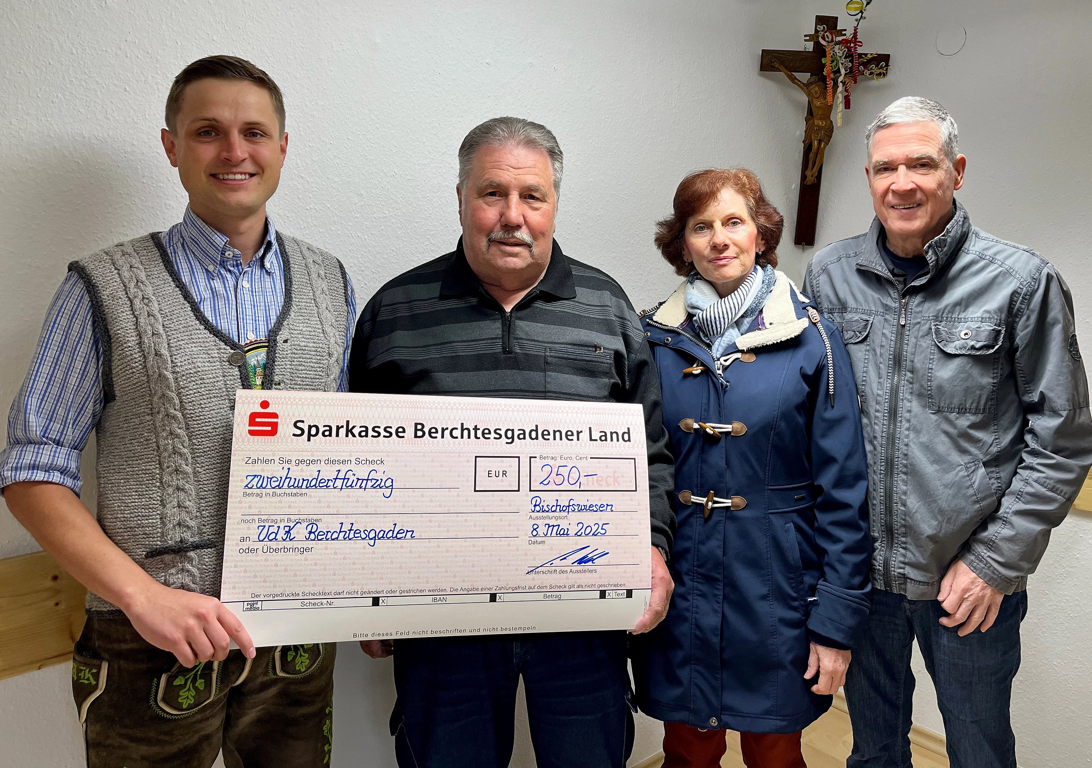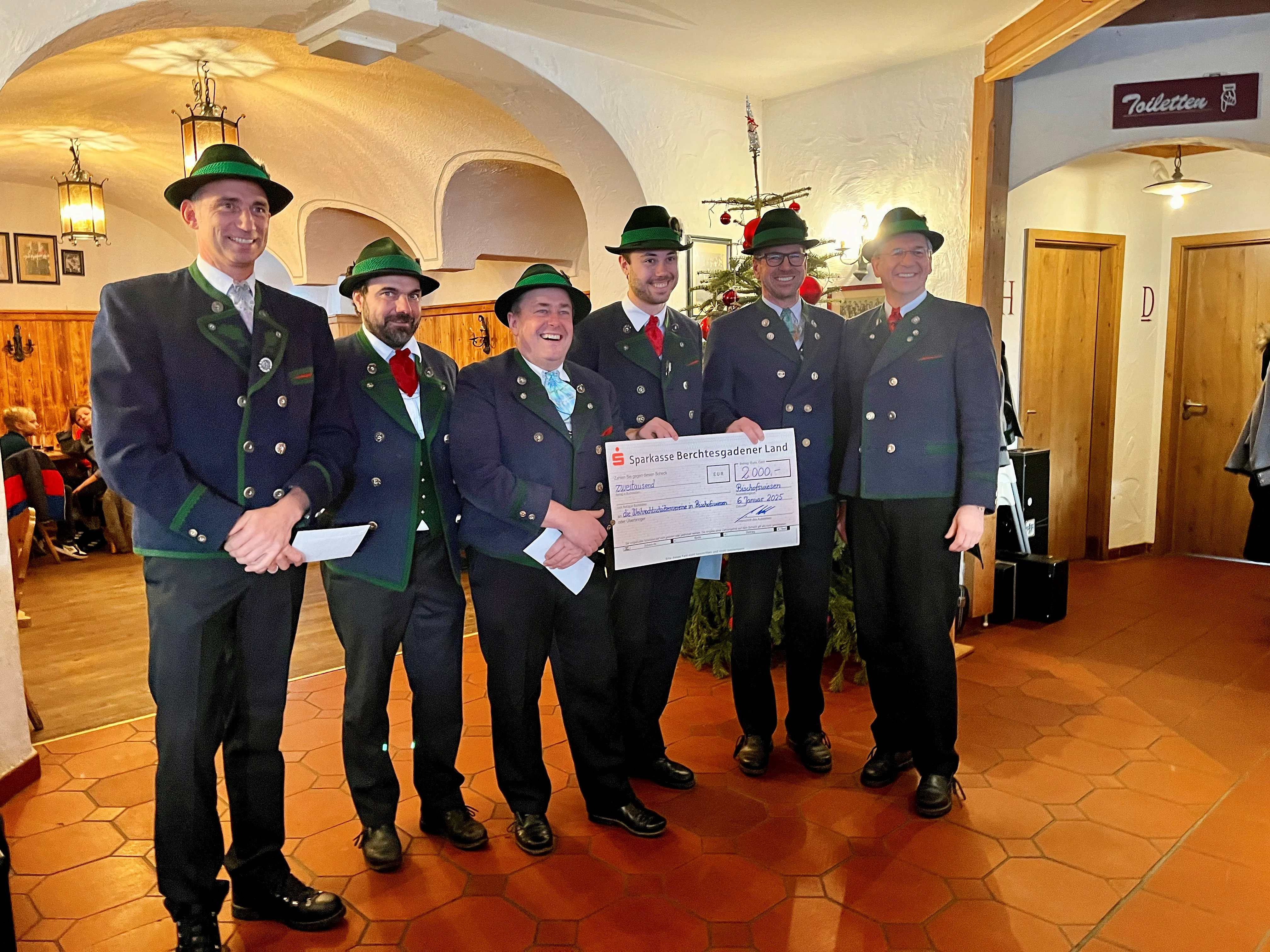 Anlässlich des Jahrtags der Bischofswieser Weihnachtsschützen, wurden am 6. Januar 2025 nach der kirchlichen Heilig-Drei-König-Messe, den fünf Bischofswieser Weihnachtsschützenvereinen ein Spendenscheck über 2.000 Euro überreicht.