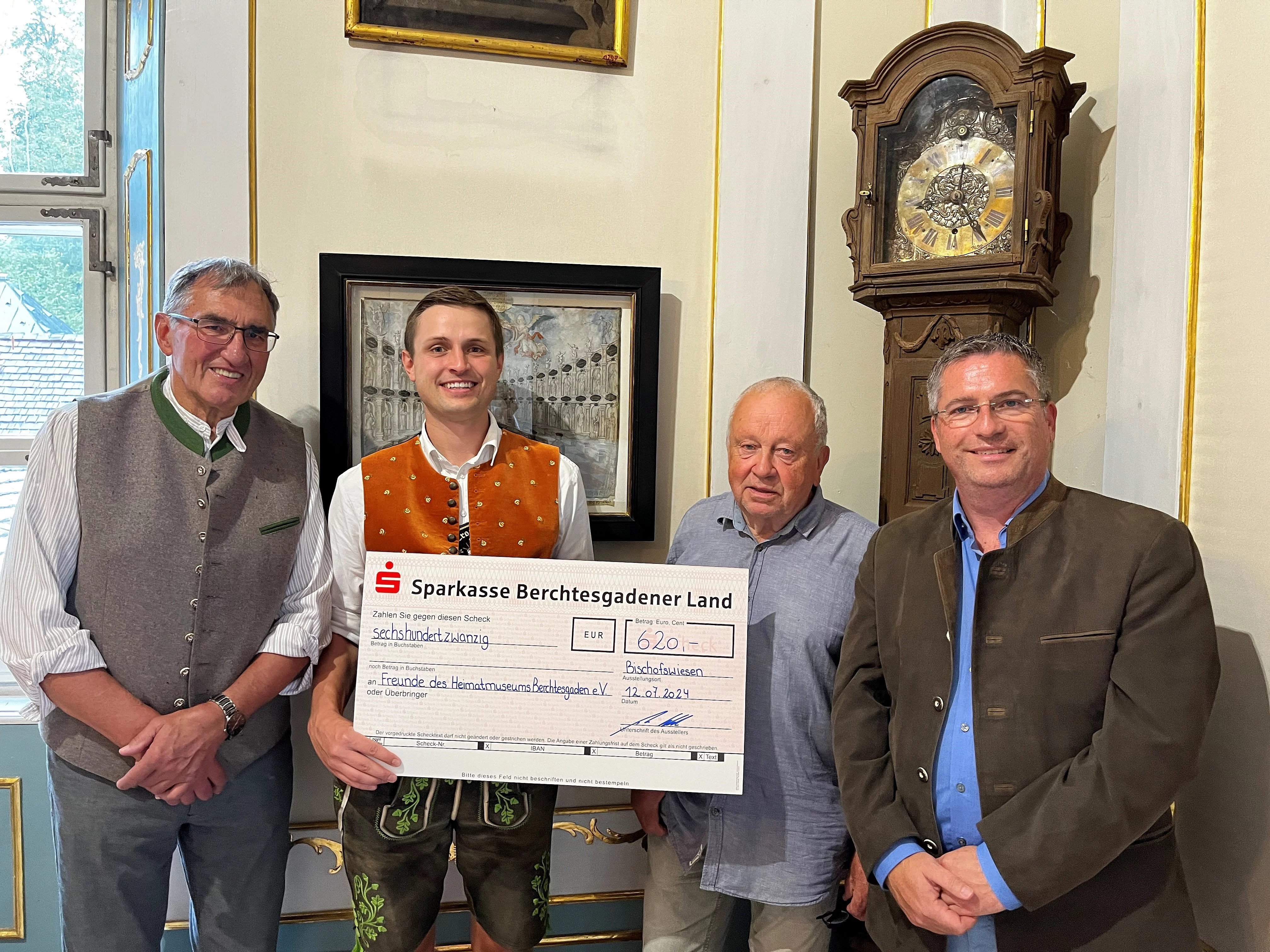 Darüber hinaus wurde in diesem Rahmen durch das Hofbrauhaus Berchtesgaden ein Spendenscheck an die Stiftung über 3.000 € für das Haus der Vereine in Bischofswiesen überreicht.