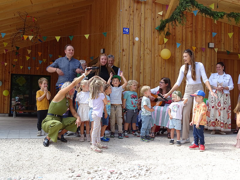 Die Kinder der beiden neuen Waldgruppen sangen, zusammen mit ihren Gruppenleitungen, noch ein Lied.