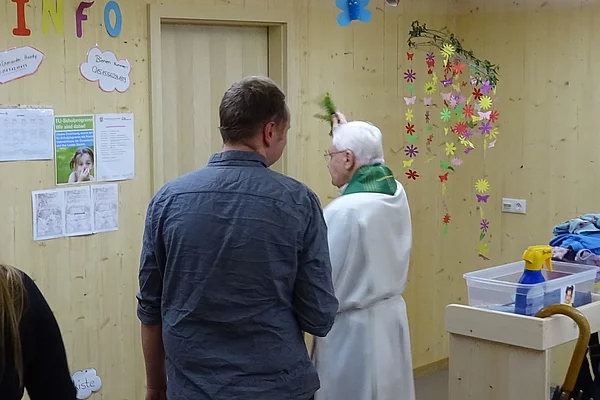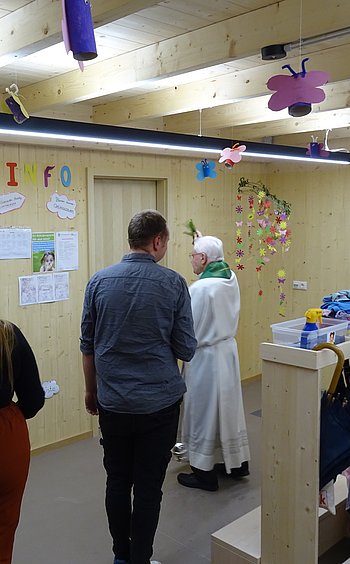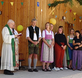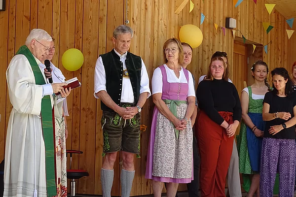 Mit einem kurzen Gottesdienst wurde anfangs von Pfarrer Bielasik die neu gebaute Waldhütte eingeweiht.