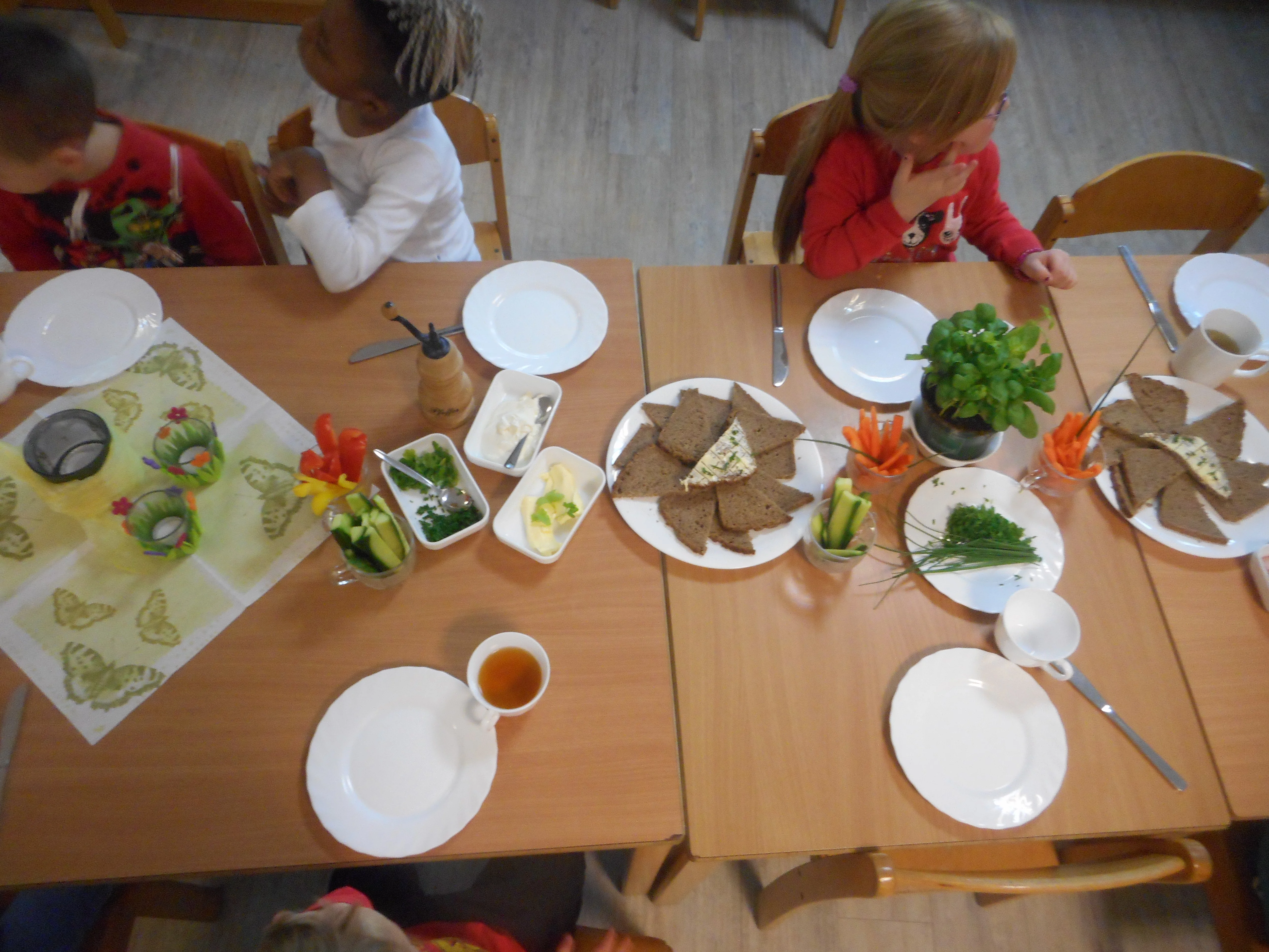 Dank des Engagements der Erzieherinnen und Erzieher, folgte auf die Theorie dann die Praxis. Das Gelernte wurde bei einem gemeinsamen Frühstück, gleich ein paar Tage später, mit den Kindern umgesetzt.