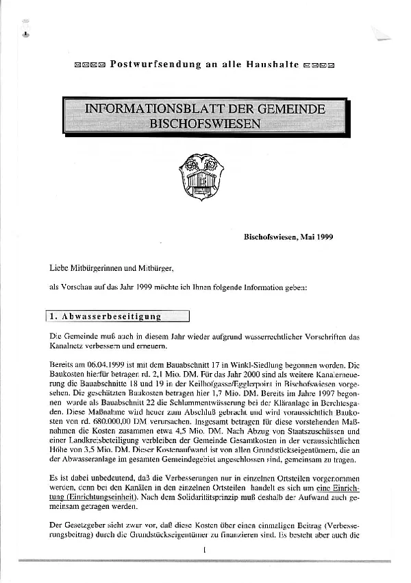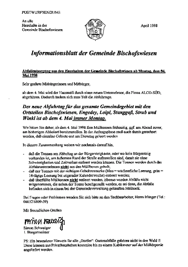 Gemeindeinfoblatt Bischofswiesen April 1998